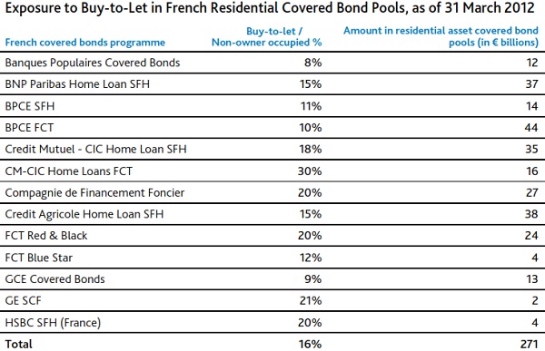 Regarding the credit impact on French RMBS and covered bonds, the analysts noted that these have less than 20% exposure to buy-to-let properties: an average proportion of loans to buy-to-let borrowers of 19% in French RMBS portfolios and 16% in French covered bond portfolios (see chart below).